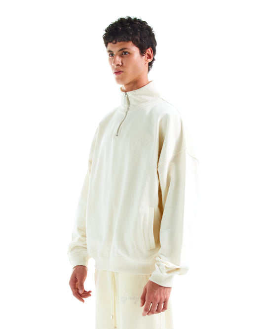 AJEBRY quarter zip embroidered sweatshirt - Off White