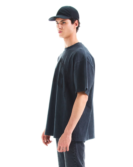 AJEBRY cracked collegiate logo tee - Vintage Black